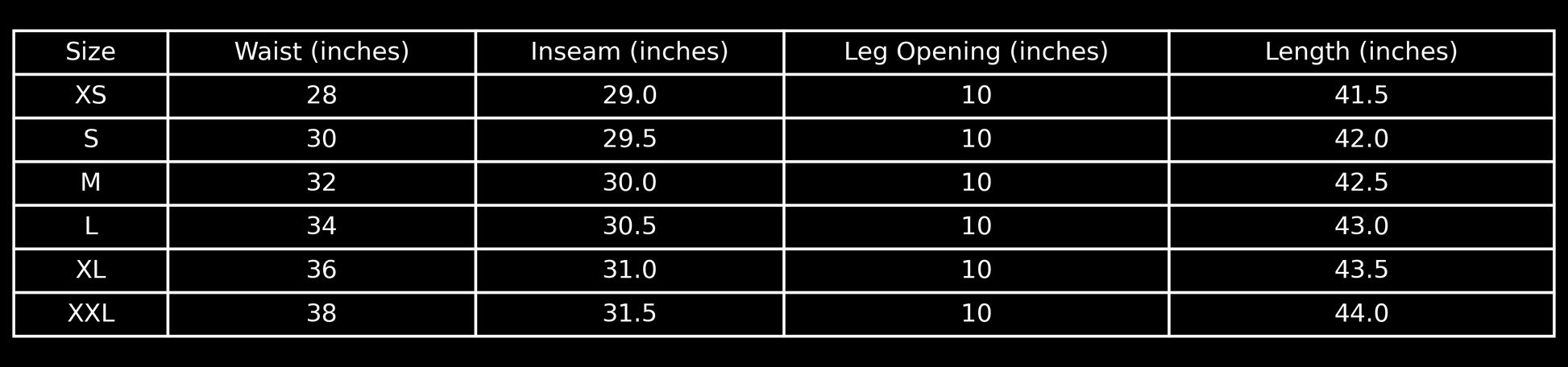 Wide leg: 10 inch opening for that baggy look easy